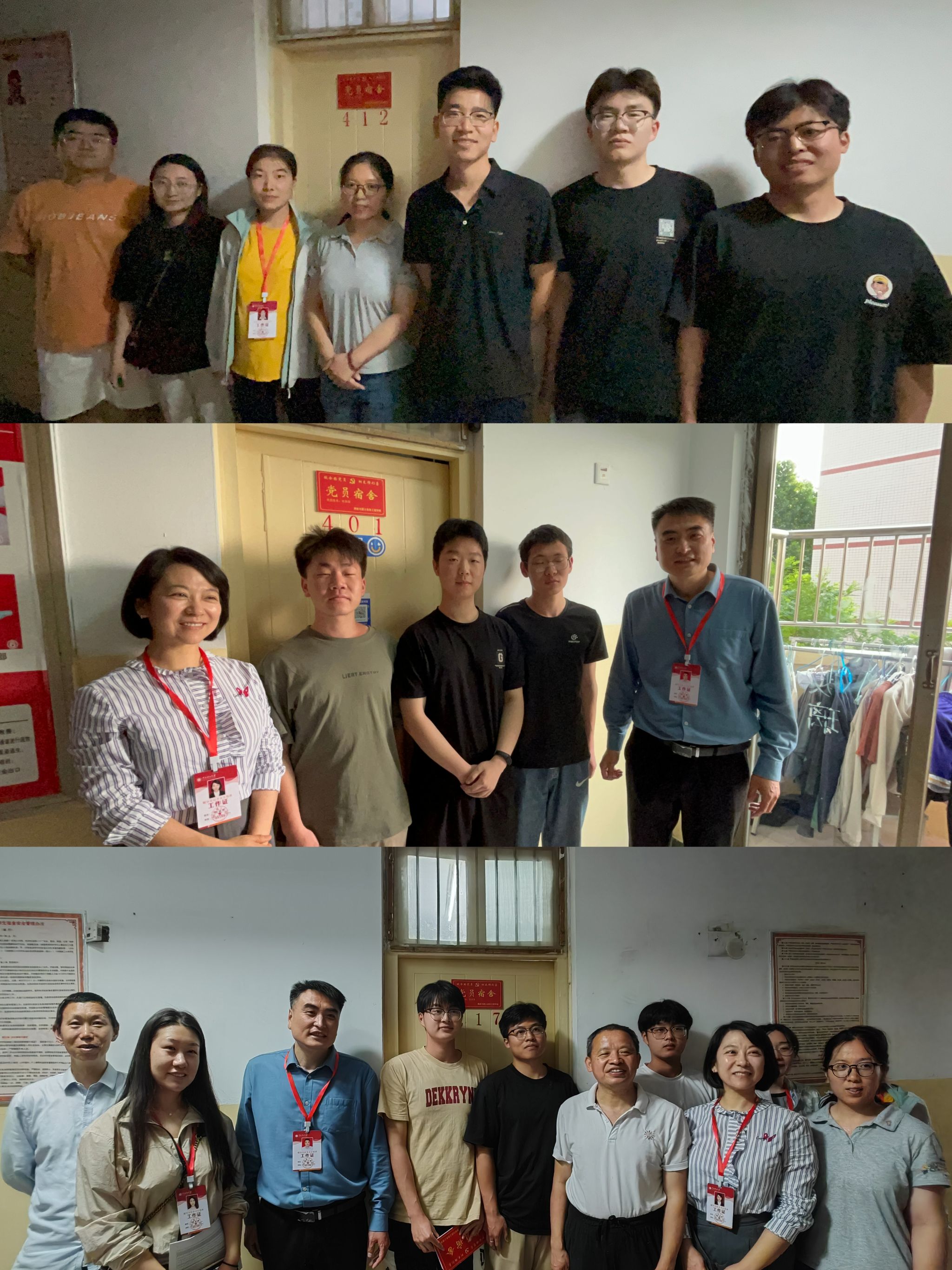 全体辅导员及学业导师代表深入学生宿舍,与学生党员、宿舍成员们就学习、生活、考研、就业等情况进行亲切交流。郭书记强调,“党员宿舍”不仅是荣誉,更是激励。学生党员要始终牢记自己的身份和责任,从学习到工作,从宿舍到班级,以点带面,充分发挥模范带头作用,推进优良院风、学风建设,真正实现“‘寓’红心,‘宿’雅室”的目标。老师们表示,希望学生党员全面提升自身党员素养,亮身份、树形象、做表率,激励大家向优秀学生党员看齐,营造积极向上的宿舍文化氛围。随后,郭书记与辅导员及学业导师为2021级党员宿舍挂牌,并与宿舍成员合影留念。