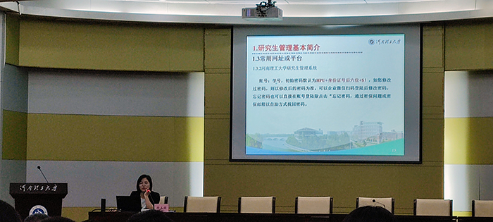 会议伊始,谢玉娟老师对21级研究生表达了热烈的欢迎和鼓励,之后从研究生基本管理入手,为大家讲解了与研究生学习息息相关的各项制度和规定。首先,谢老师深入介绍了研究生常用网址和平台以及无码