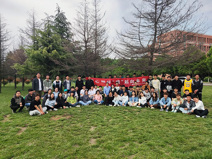楼西侧草坪开展了“暖心相伴,一起向未来”的班级团建活动。辅导员李静老师和班主任连增增老师与同学们一起参加活动,共享集体的温暖和快乐。