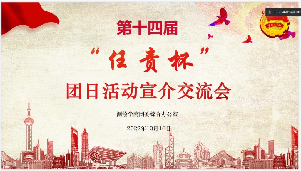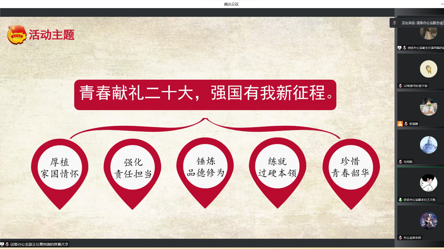 团委在线上召开第十四届任责杯团日活动宣介会,本次会议由张瑞娜主持,21、22级各班团支书、班长以及无码
