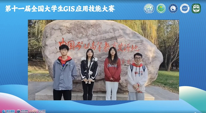 地理信息科学系主任景海涛教授带队,程结海、王新闯任指导教师,地理信息科学系王佳铱、王婉、王海、罗鸣四位本科生组成的代表队,经过紧张激烈的角逐,最终获得了全国一等奖的优异成绩。