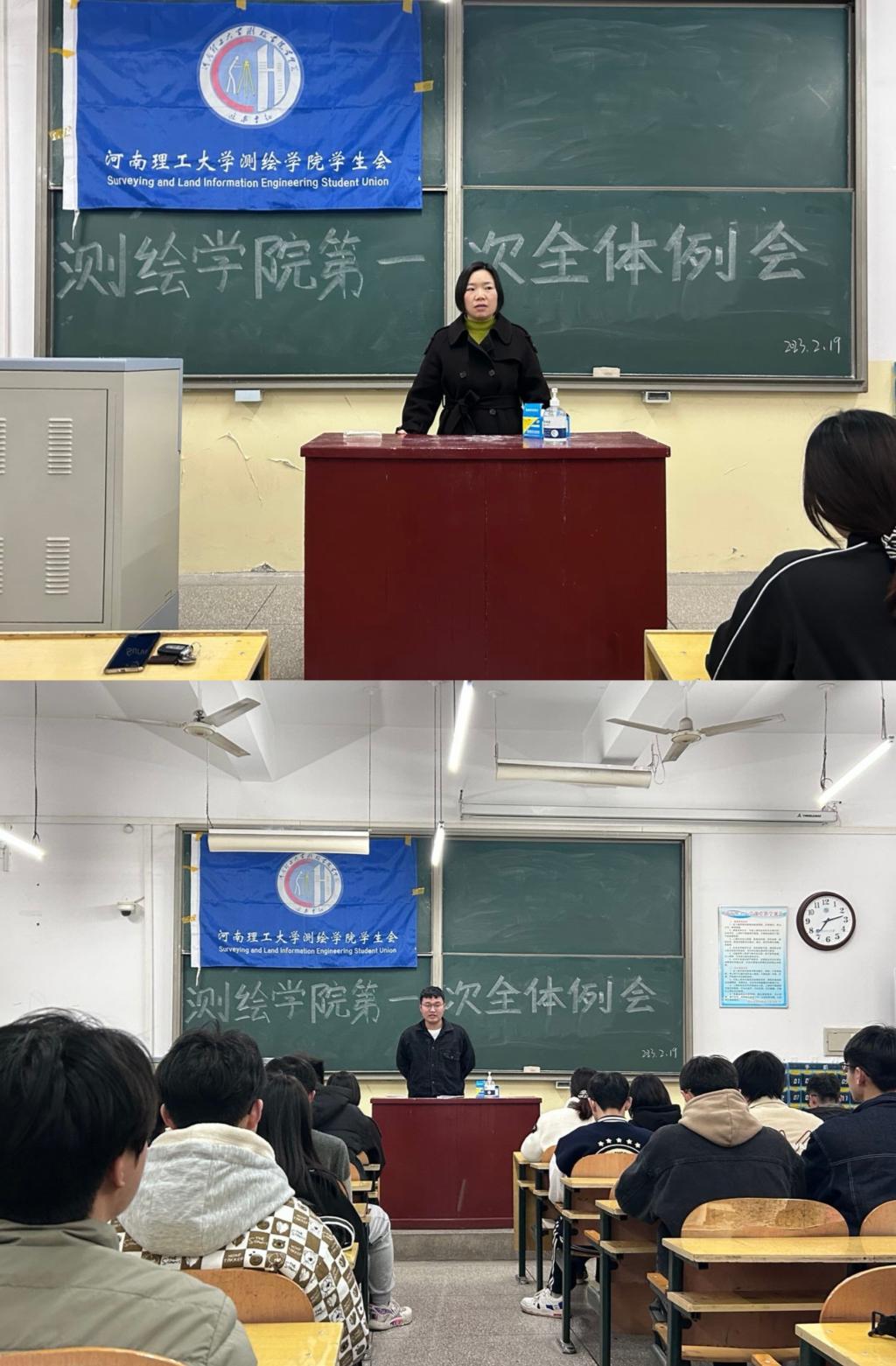 学生会在院楼103教室召开新学期第一次全体例会。院团委书记李静老师和学生会全体成员参加会议,会议由学生会办公室胡舜洸主持。