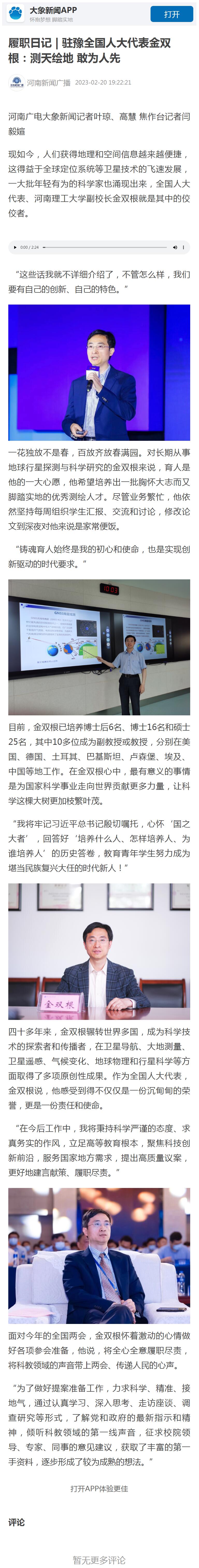 河南新闻广播:履职日记 | 驻豫全国人大代表金双根:测天绘地 敢为人先