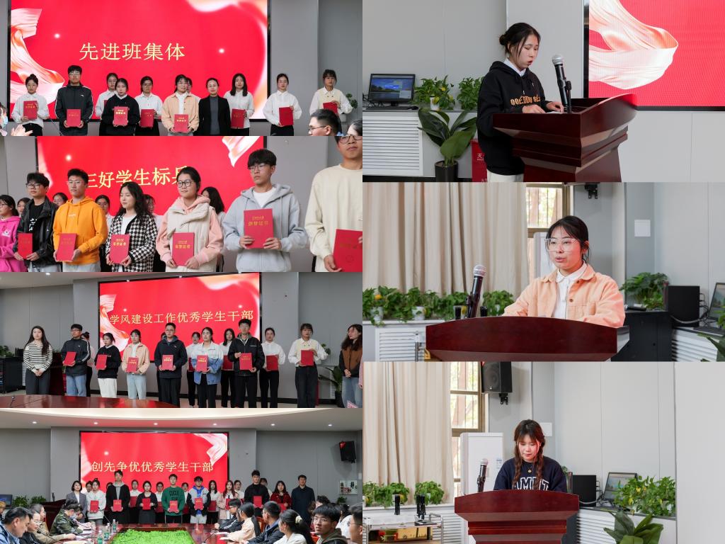 2023年度“创先争优”、“学风建设系列活动”先进集体和先进个人的表彰决定。然后,为学风建设工作优秀学生干部、三好学生标兵、优秀学生干部、先进班集体颁发荣誉证书,合影留念。学风建设工作优秀学生干部代表马寒雨、三好学生标兵代表石永鑫和先进班集体代表靳盼分别向大家分享了工作、学习和班级建设的心得和宝贵经验,并向学校和老师们表达衷心感谢,他们都表示将传承测绘薪火,砥砺前行再出发,努力成为堪当民族复兴重任的时代新人。