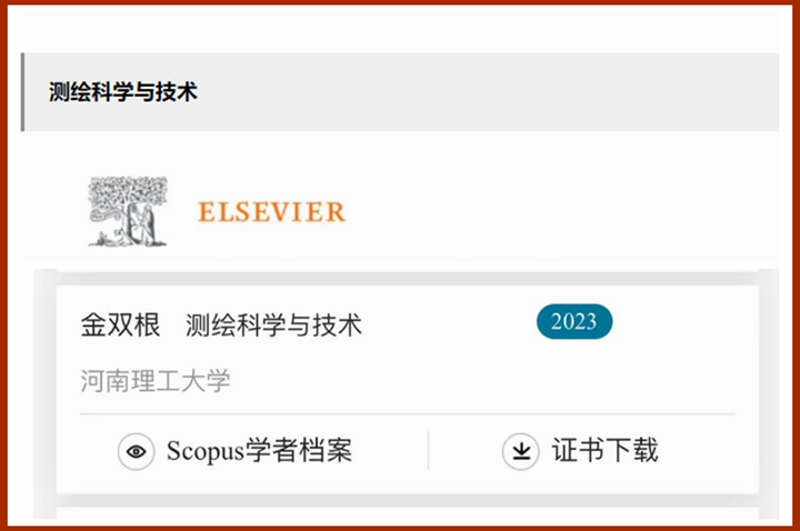 3月27日,爱思唯尔(Elsevier)发布2023“中国高被引学者”(Highly Cited Chinese Researchers)榜单,我校学术副校长金双根入选“中国高被引学者”“测绘科学与技术”领域榜单。