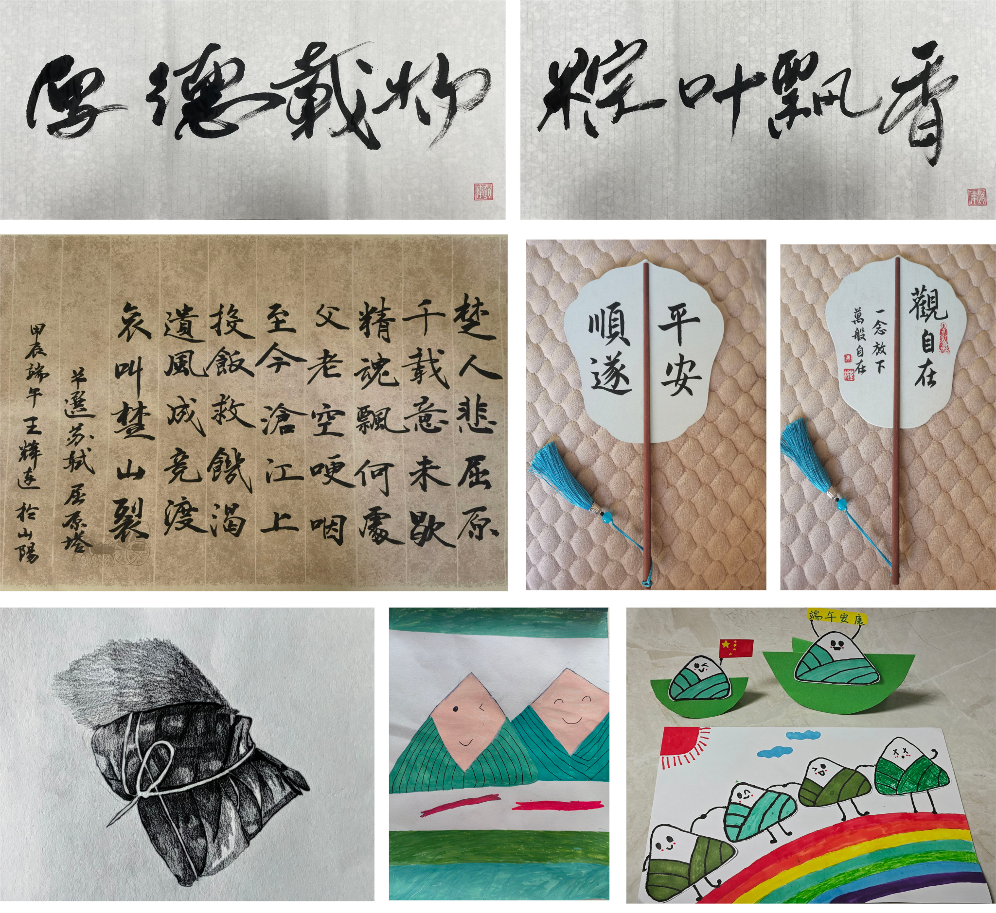 活动期间,教职工踊跃参加,共提交书法、绘画、摄影、微视频作品20余件。其中,书画作品以《屈原塔》等名家诗词为主题,展现了对伟大爱国诗人屈原求索精神和高洁品格的敬仰之情。摄影和微视频作品以包粽子、挂艾草、制作五彩绳、制作香囊、制作团扇等端午习俗为主题,生动反映了习俗之美、劳动之美,表达人们对美好生活的祝福和向往。