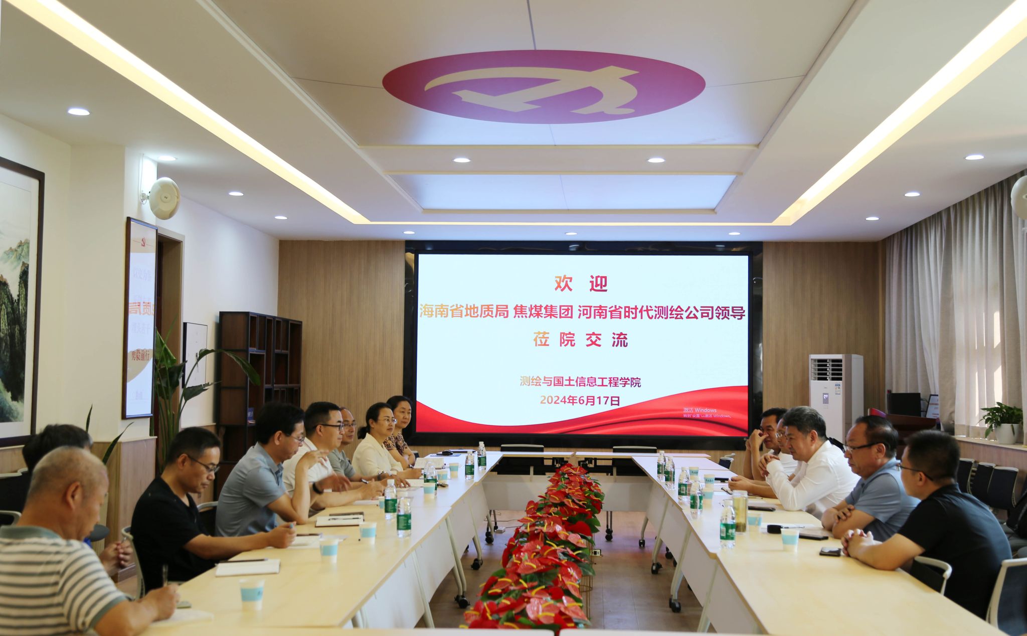 6月17日下午,海南省地质局局长苏金明(矿测85级校友)、地矿处处长杨朝云,河南省时代测绘公司总经理周洪亮(矿测85级校友)、焦煤集团李润波(矿测85级校友)等一行5人莅院交流。座谈会在无码