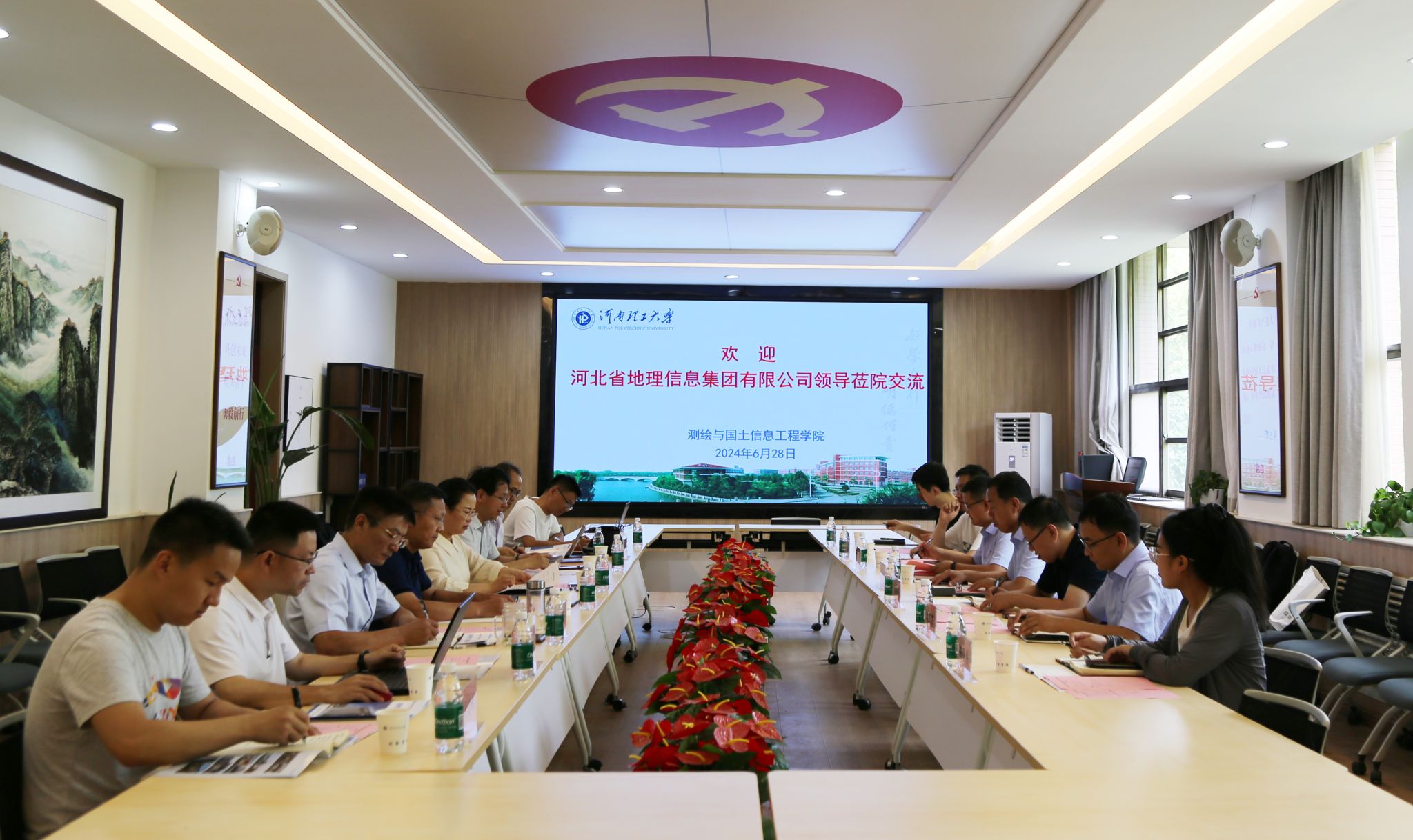 6月28日上午,河北省地理信息集团有限公司董事长陈群国、总工程师闻洪峰、技术部部长王友雷、自然资源大数据应用中心主任孙 伟等一行7人莅院交流座谈,座谈会在测绘楼221会议室举行,无码