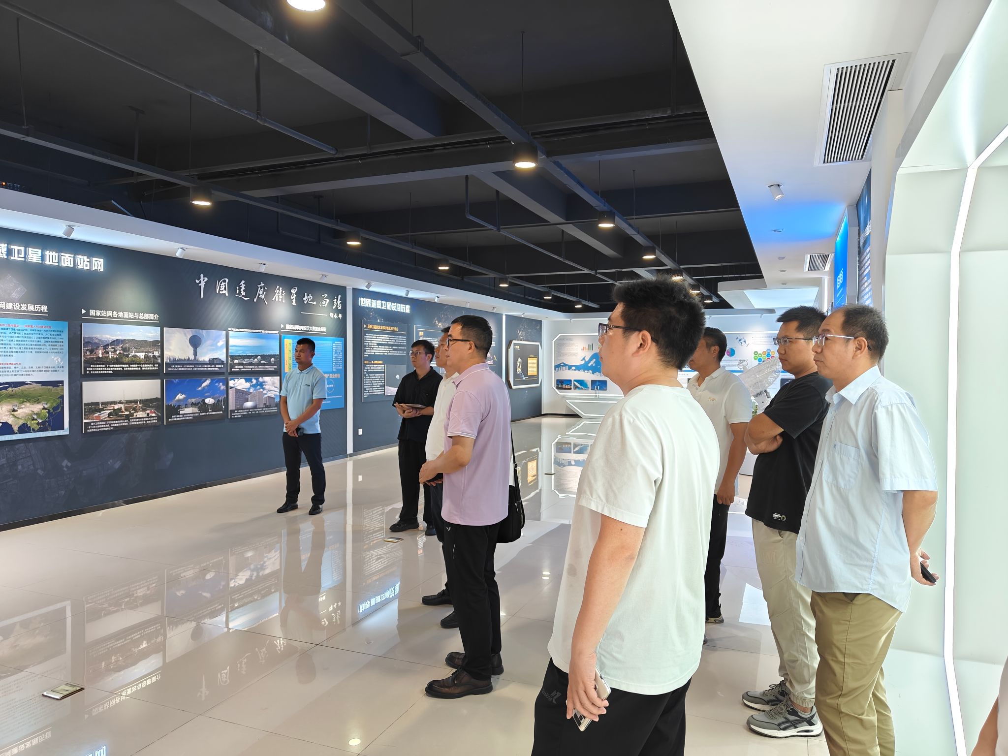 的科研成果、人才培养和招生就业等情况,双方人员就校企合作进行了深入交流和探讨。接着参会人员一并参观了中科星桥卫星数据接收、卫星运控、空天数据处理应用平台以及高分辨率星座等空天地一体化全产业链条的建设成果。