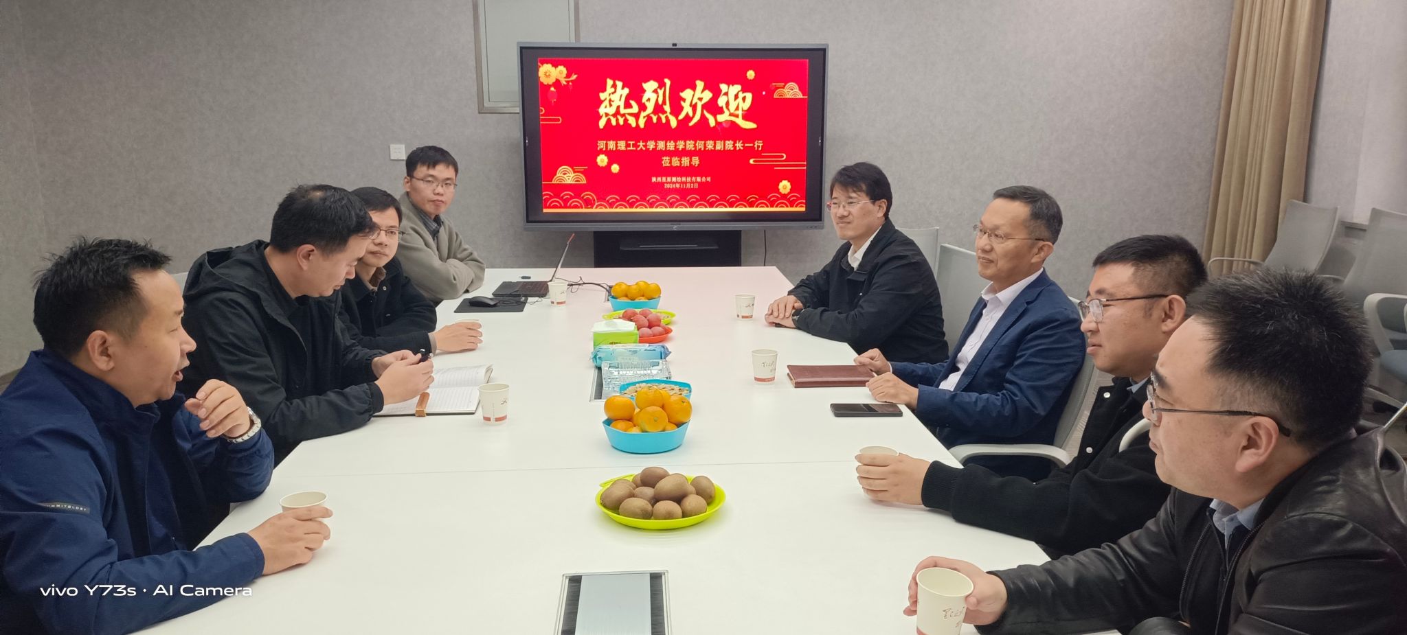 副院长何荣一行前往陕西星原测绘科技有限公司进行“访企拓岗”活动。航天宏图信息技术股份有限公司西安公司副总经理薄一民,中科星图地球副总裁兼智脑引擎研发中心总经理马斅良,西安中科星云空间信息研究院院长、2002级测绘工程校友袁荣才,机械工业勘察设计研究院有限公司2007级测绘工程校友范新华出席活动,会议由陕西星原测绘科技有限公司总经理、2008级测绘工程校友王政主持。