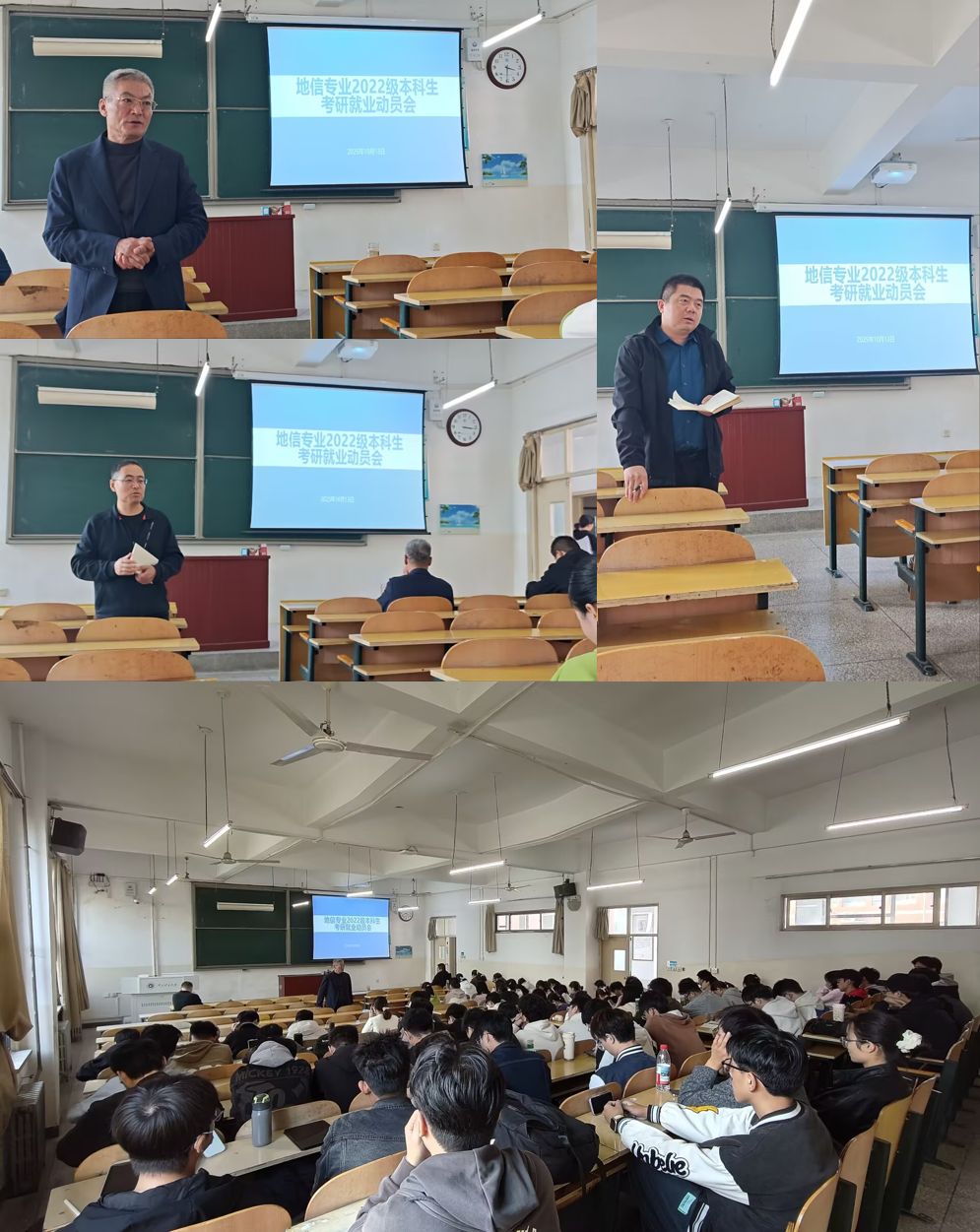 302举办2022级本科生考研就业动员会。会议由地信22级班主任何湜主持,地信系教授景海涛、系主任王世东、支部书记王磊及地信专业22级全体本科生参加会议。