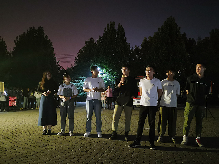 学生会艺术团同文艺部于体育馆外东北角为新生举办军训联欢会。