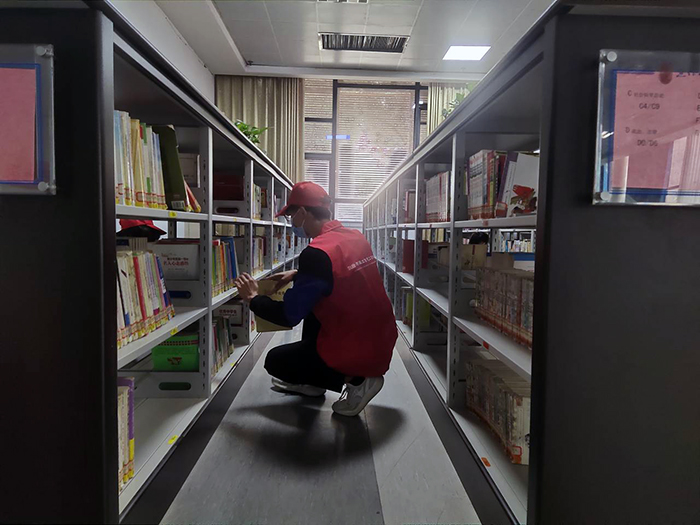 志愿者早早地赶到市图书馆,开始一天的忙碌。由于疫情期间,图书馆未能开放,图书及展柜堆积不少灰尘,志愿者们认真清理书架、阅读区桌椅,将未摆放好的图书归纳整齐。经过一个多小时的忙碌,图书室变得整洁有序,为前来阅读的市民营造温馨的氛围。陆续有图书爱好者前来借阅及归还图书,志愿者不仅将图书及时分类归位,并向市民讲解如何归纳图书和快速找到想要的书籍,得到前来阅读的市民一致好评。