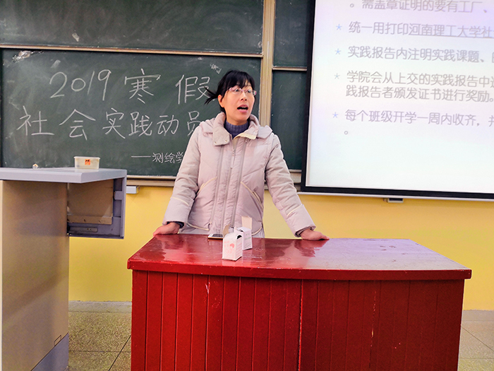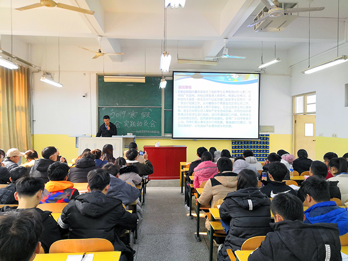 于院楼103号教室召开寒假社会实践动员会暨假期安全防骗讲座。2018级新生班长、团支书以及组织委员参加了此次讲座。