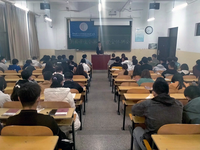 第十六届学生会第一次全体例会于院102教室召开,学生会全体成员参加会议,学生会办公室主任周行主持会议。