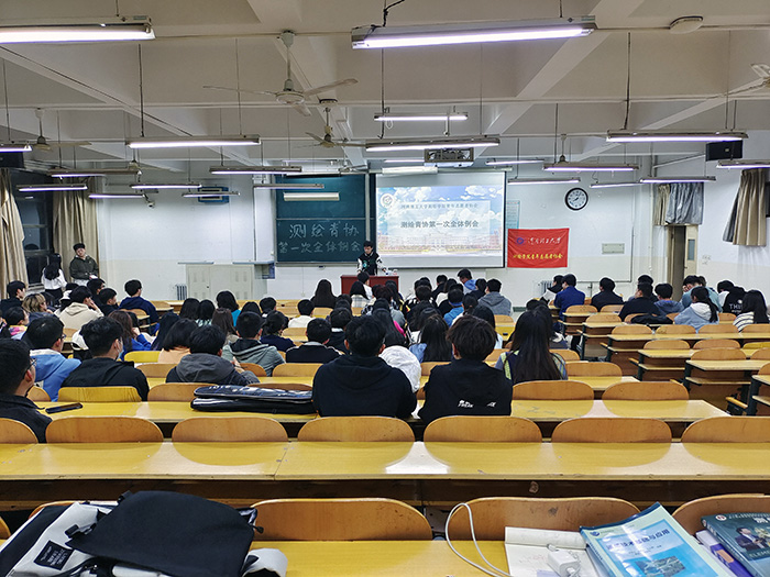 青协于院楼401教室召开第一次全体例会,会议由院青协干事卢锦南和陈孝先主持,测绘青协全体成员参加。