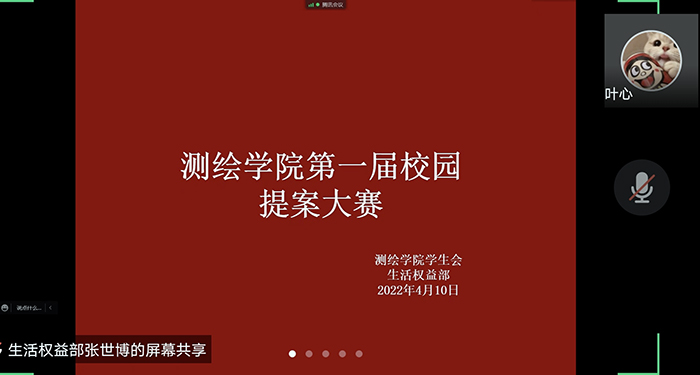 本次校园提案大赛有助于引导青年大学生自觉把个人的成长成才与学校的发展紧密联系在一起,测绘学子将从我做起,以主人翁的意识汇聚力量努力助推学校事业发展高质量,以优异的成绩向党的二十大胜利召开献礼。