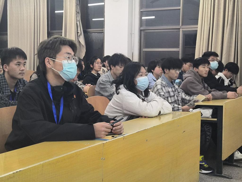 会议开始,由组织部干事邓钦濠介绍我国两会的组成、职能与历史。随后,组织部干事王文燕向大家讲解李克强总理在十四届全国人大一次会议中所做政府工作报告,介绍疫情对我国经济发展和人民生活水平的影响,国家在过去五年里取得的成就和今年的工作重点。办公室干事石永鑫讲述2022年度感动中国十大人物钱七虎的先进事迹,希望全体学员以“坚定信念、敢闯敢拼”的精神描绘青春底色,勇于追求梦想。办公室干事宁荣萱讲述2022年度感动中国十大人物杨宁的先进事迹。秘书处干事武志川讲解雷锋精神的内涵以及在新时代的意义,号召大家继承并发扬雷锋精神。最后,宣传部干事王晓虎讲解对于春季流感的认识和预防。