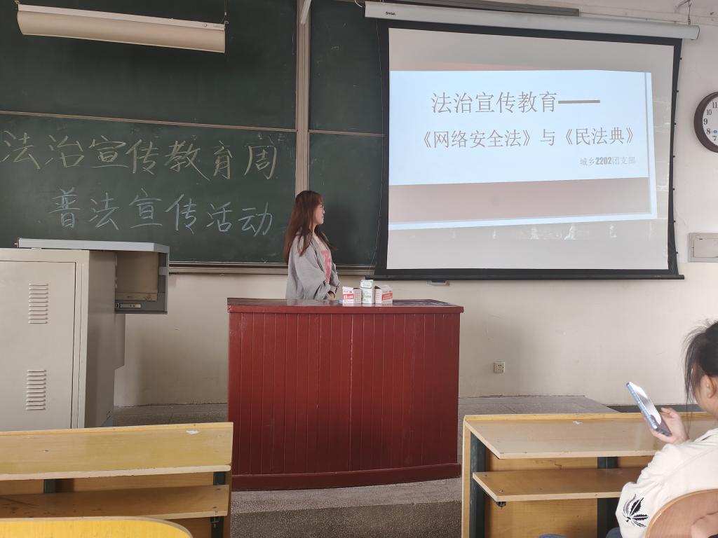 宣讲会上,各主讲人结合网络信息时代高速发展的现状以及《民法典》在大家心中扎根尚浅的背景,进行了《网络安全法》和《民法典》相关条例的宣讲,旨在让每一位同学在会后能积极了解相关法律,真正做到知法,懂法,不犯法。