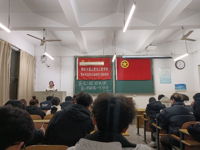第十三期“青马工程”培训班于院楼302教室召开第二学期第一次班会。班会由秘书处付涛主持。