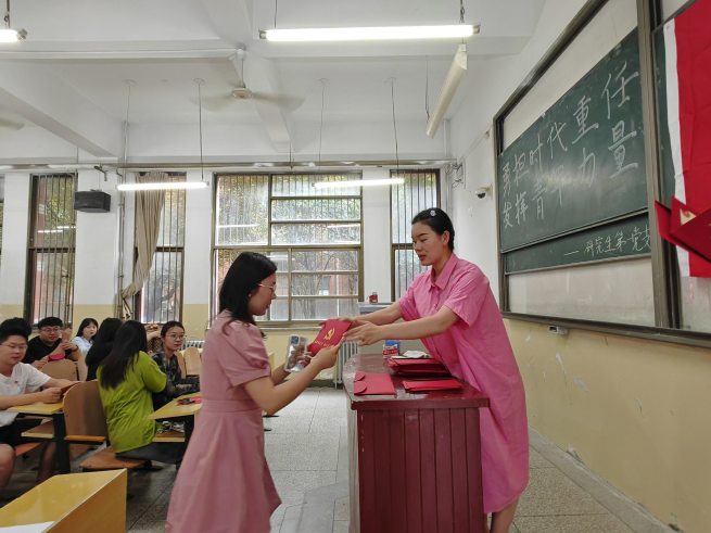 秦何同志首先带领大家回顾了中国共产党在各个历史时期的奋斗历程,总结了党在成立103周年以来取得的伟大成就,鼓励大家勇于承担时代重任,为党和人民的事业贡献自己的力量。随后,党支部向全体党员赠送了精心制作的“政治生日”贺卡。贺卡上写满了党组织对党员同志的深情祝福和殷切嘱托,希望大家坚守初心、勇担使命。最后,全体党员在秦何同志的带领下重温入党誓词。在庄严的党旗下,党员们齐声宣誓,表达了对党的忠诚和对共产主义事业的坚定信念。通过这次宣誓,党员们更加深刻地认识到自己的责任和使命以及终生践行党的入党誓词的决心。