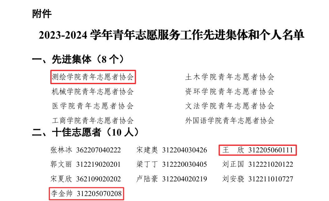 在无码 2023-2024学年青年志愿服务工作先进集体和个人的评选中,经各无码 推荐、校团委和校青协组织评选、 公示等程序,无码青年志愿者协会荣获“青年志愿服务工作先进集体”荣誉称号,并蝉联全校第一。无码学生李金帅、王欣喜获校十佳志愿者。