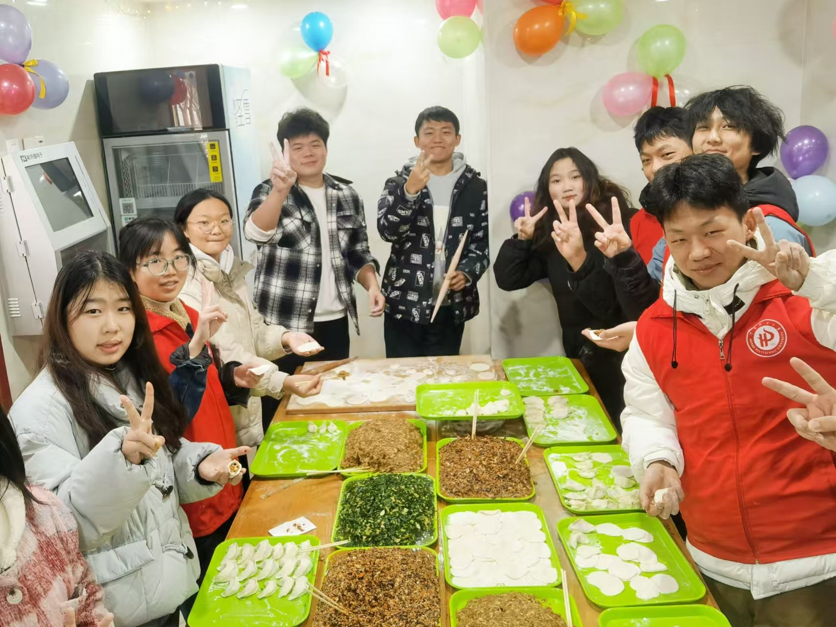 青年志愿者协会在梅园三号宿舍楼大厅举行了冬至包饺子活动。以饺子为情感纽带,传承中华传统节日文化,为考研学子们送上关心与鼓励。
