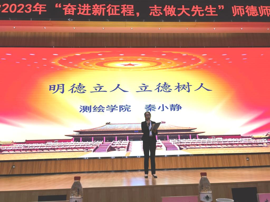 杨笑冰以《手揽星光育桃李 丹心筑梦谱华章》为题,以繁星为喻,用感人的事例、生动的语言倾诉辅导员的初心,从“心中有爱”“眼里有光”“肩上有责”的角度诠释了身为新时代教师应该具备的高尚道德情操和博大仁爱之心,体现了师德师爱在平凡中的伟大。杜宗亮以《秉承测绘之精神 践行师德之辉光》为题,用慷慨激昂的话语阐述了勇于创新、精益求精、精诚团结、艰苦奋斗的测绘精神,并希冀测绘之精神践行至点点滴滴,测绘之辉光播洒到祖国大地。秦小静以《明德立人 立德树人》为题,从自身角色转变的角度,以诸多优秀教师为例,回忆与学生互动交流的点点滴滴,剖析了师德的本质和内涵。