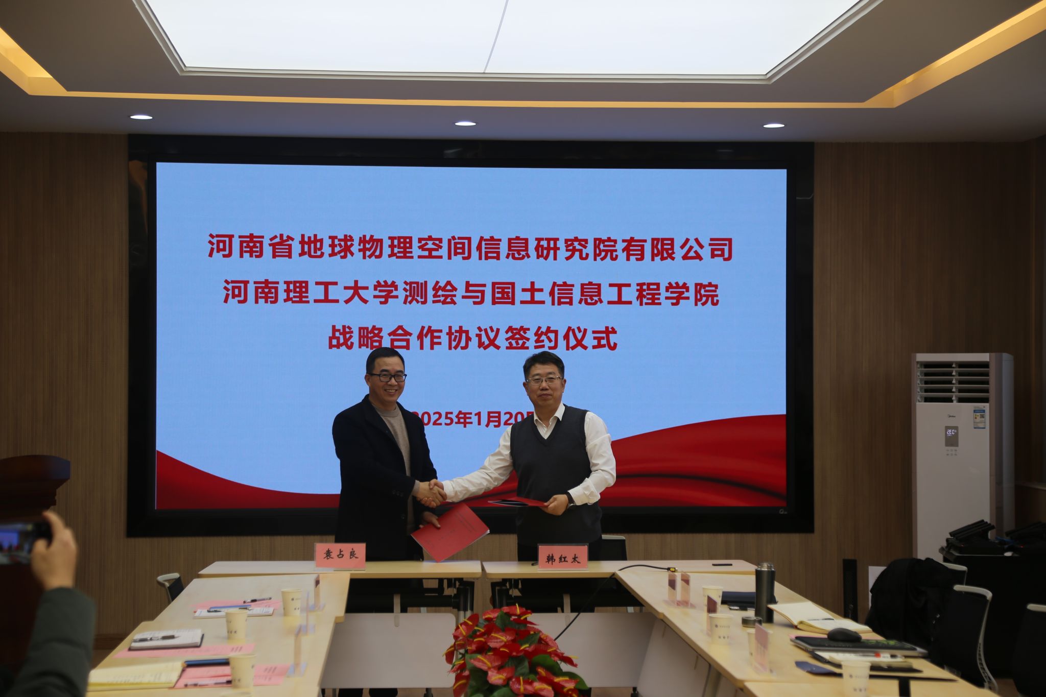 院长袁占良、河南省地球物理空间信息研究院有限公司党委书记韩红太等双方有关同志出席签约仪式。