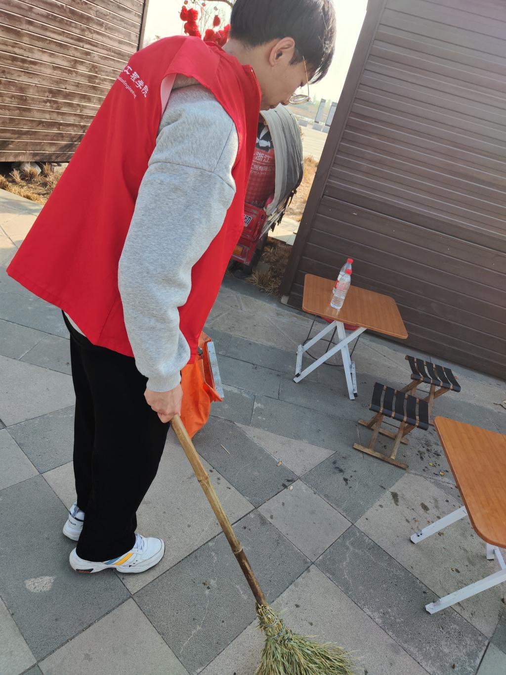 下午两点,志愿者们有序来到大沙河生态公园。志愿者们分为两组,一组同学搭建临时志愿者服务平台,向过往行人宣传雷锋精神。另一组同学戴好手套,手持环保袋、夹子等工具对公园内的白色垃圾进行捡拾,并对乱丢垃圾等不文明现象进行劝导。志愿者们以平凡朴实的行动,传承和弘扬了雷锋精神,宣扬了保护生态环境的重要性。