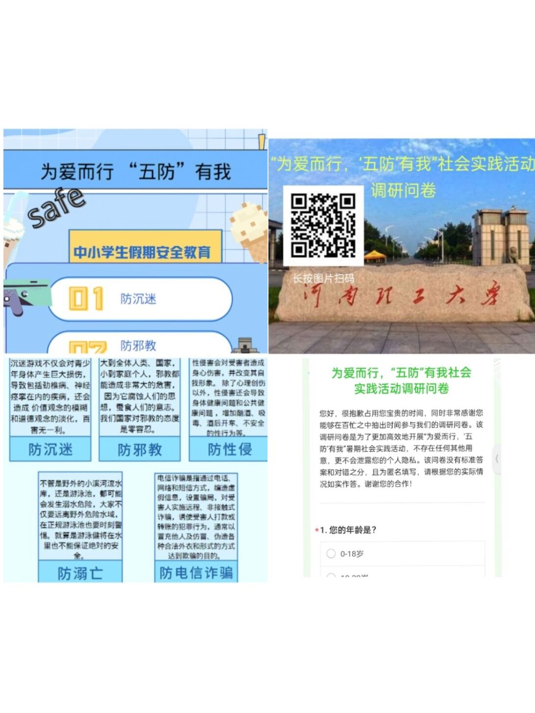 “为爱而行,五防有我”暑期三下乡社会实践团6名成员,分别在河南省洛阳市、濮阳市、平顶山市、鹤壁市、辽宁省沈阳市等地开展为期十天的暑期社会实践活动。
