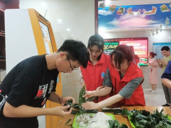 经过志愿者前期的精心准备,上午10点,端午节活动准时开始。同学们在现场准备了多个特殊粽子用以献礼建党百年,同时为更好地增加活动的趣味性和知识性,活动采取了党史知识问答的形式,答题活动的获胜者将获得数量不等的特殊粽子作为奖励,而多余的粽子将会分发给现场的活动参与者。活动持续到下午1点,伴随着同学们的欢声笑语,此次活动圆满结束。