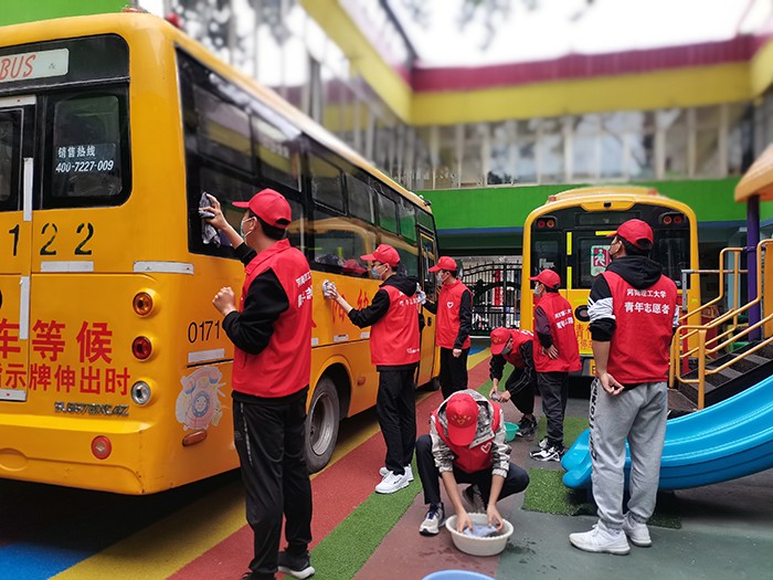 4月11日上午,志愿者们前往小太阳幼儿园进行最后一次志愿服务。他们清理院内堆积的柳絮和落叶、端盆接水、涮洗抹布,并对栏杆、门窗与校车进行擦拭,甚至细心地给院内的小菜园浇水、除草。本次活动维持了幼儿园良好的卫生环境,为孩子们呈现了一个更加整洁干净的校园。至此,本次活动也圆满结束。