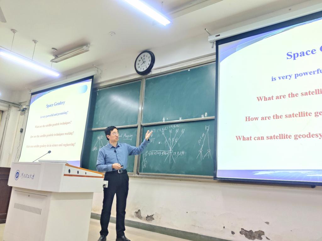 金双根从“测绘”外文名称由来及发展历程讲起,细致讲述了GNSS、北斗、InSAR、卫星重力等前沿空间大地测量技术的原理及方法,以图文并茂的形式为学生们讲述了空间大地测量手段在诸多领域的应用。