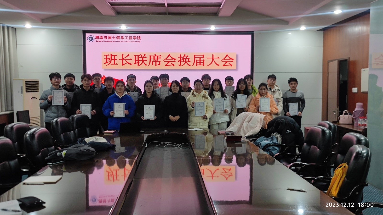 在院三楼会议室召开2023年班长联席会换届大会。辅导员拓海燕、班长联席会主席刘海健和班长联席会委员参加本次会议,会议由马寒雨主持。