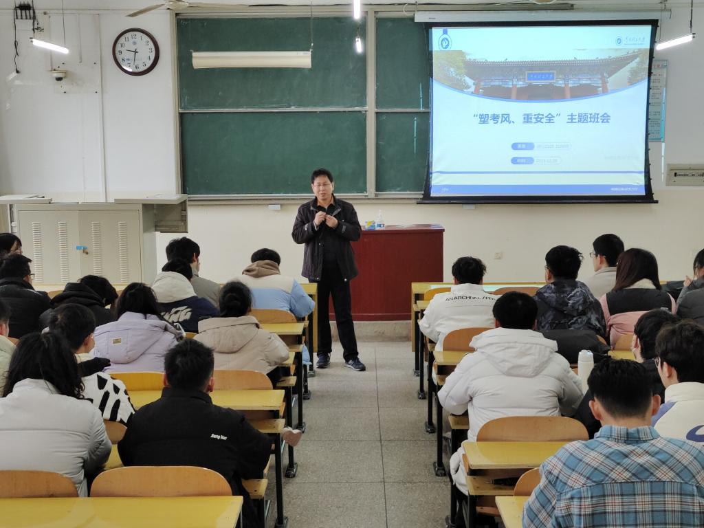 402教室召开了“塑考风、重安全”主题班会。两班学业导师柴华彬教授、谢玉娟老师以及班主任吴喜芳老师出席会议。