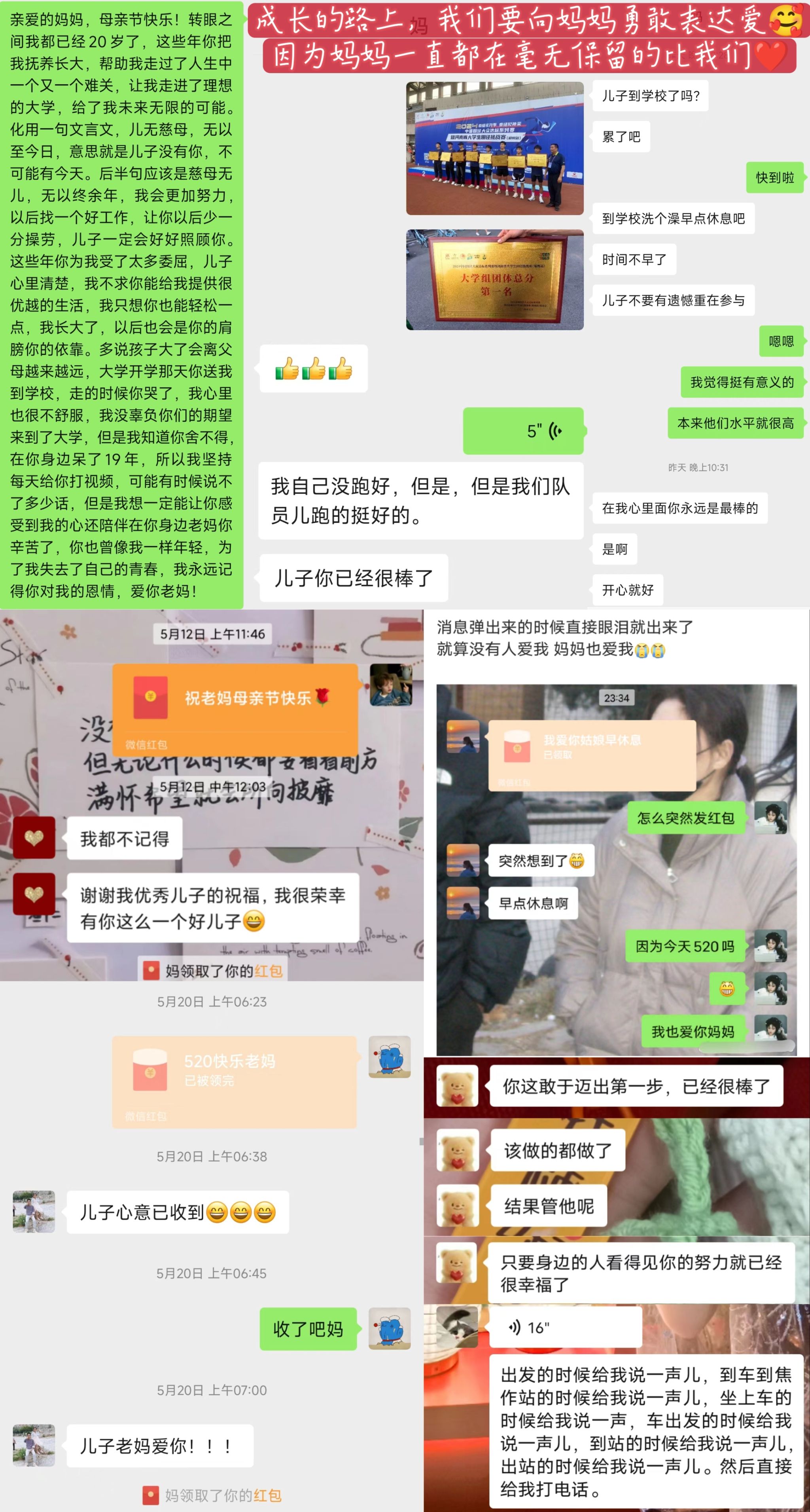 活动一经推出,便得到了广大同学的积极响应。大家纷纷提交了自己与父母视频聊天的图片和聊天记录截图,展现了与家人的亲密互动和真挚情感。有的同学分享了与父母讨论学习、生活的场景,还有的则晒出了在刚过去的母亲节当天对母亲的真挚祝福。班长联席会对征集到的作品进行了认真筛选,最终选出了一批具有代表性的图片和聊天记录截图。这些作品不仅展现了同学们与家人的深厚情感,也传递了正能量和积极向上的生活态度。