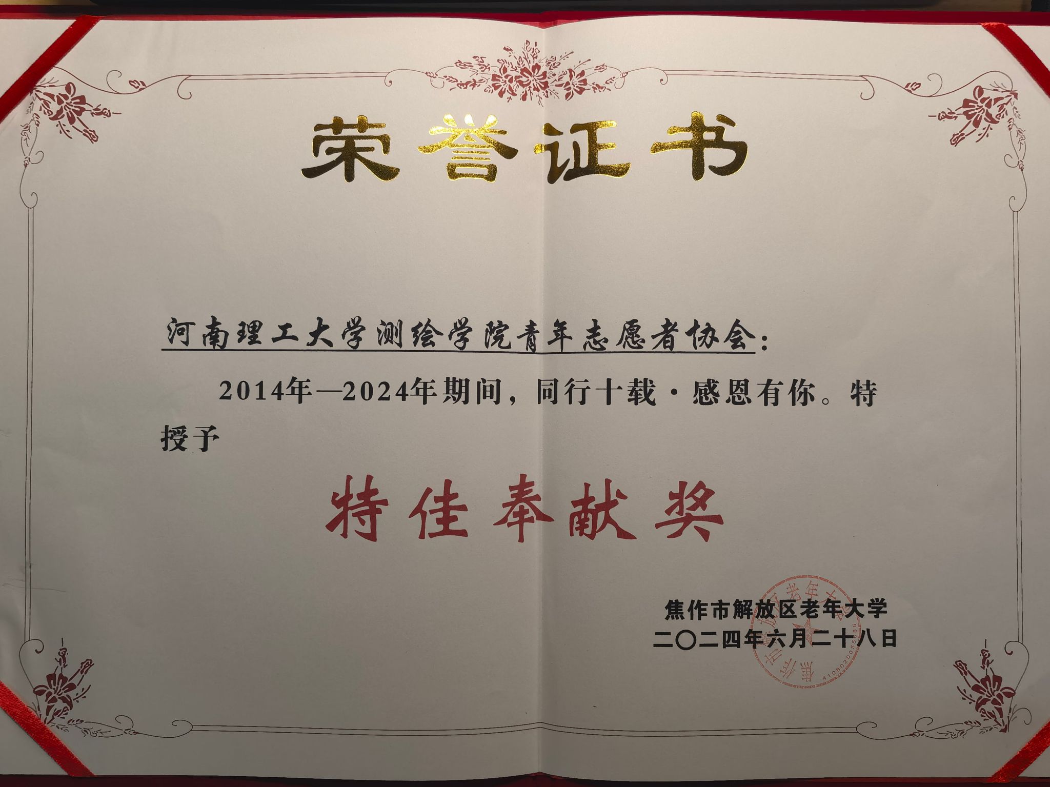 “十年坚守,乐活银龄”。不知不觉间,测绘青协与解放区老年大学的合作已经走过了十个春秋,为感谢测绘青协的志愿者在过去十年间的奉献,2024年6月28日,老年大学的负责人在焦作市地理信息产业园报告厅为测绘青协和无码